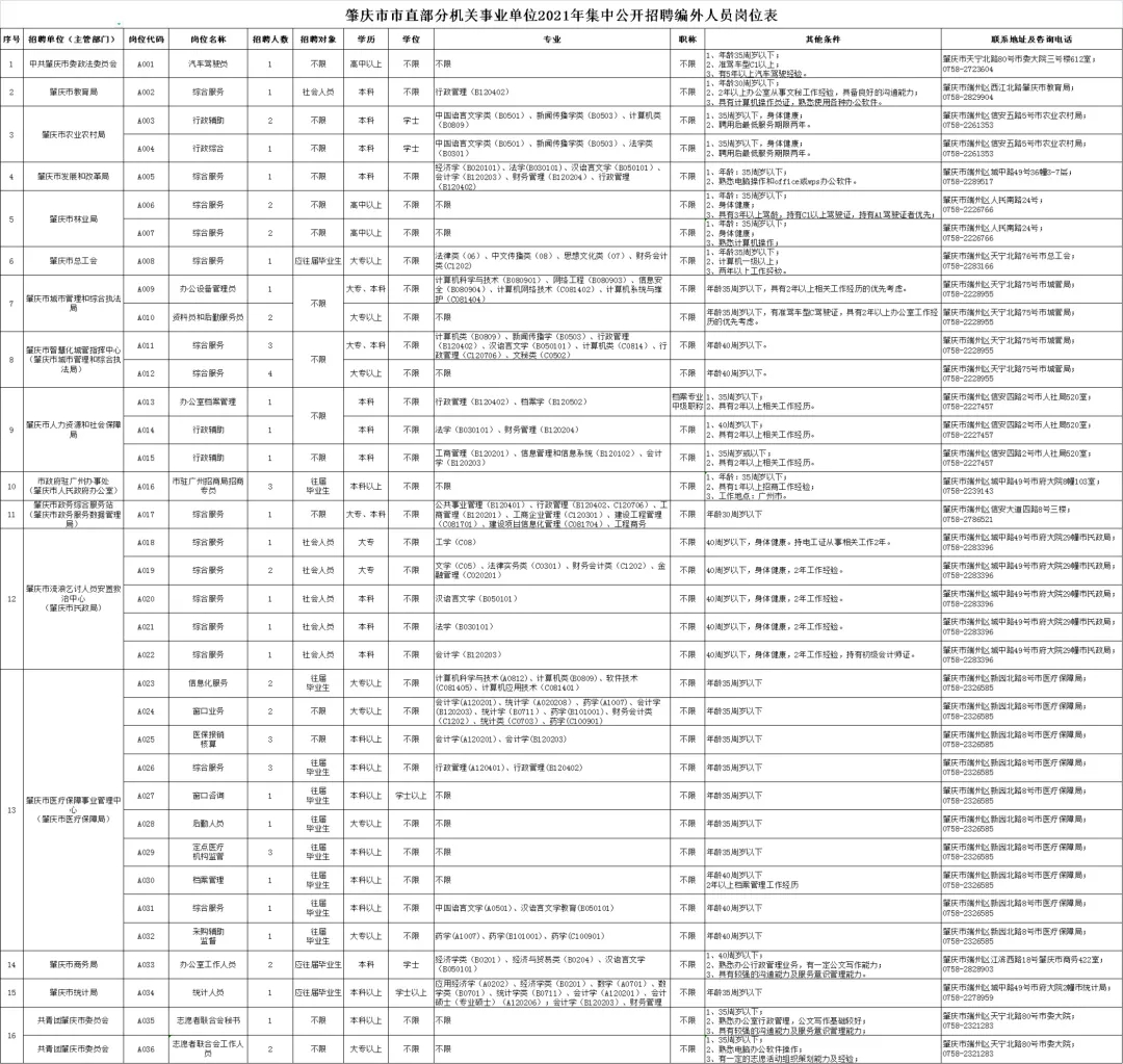 肇慶市市直部分機關(guān)事業(yè)單位2021年集中公開招聘編外人員公告