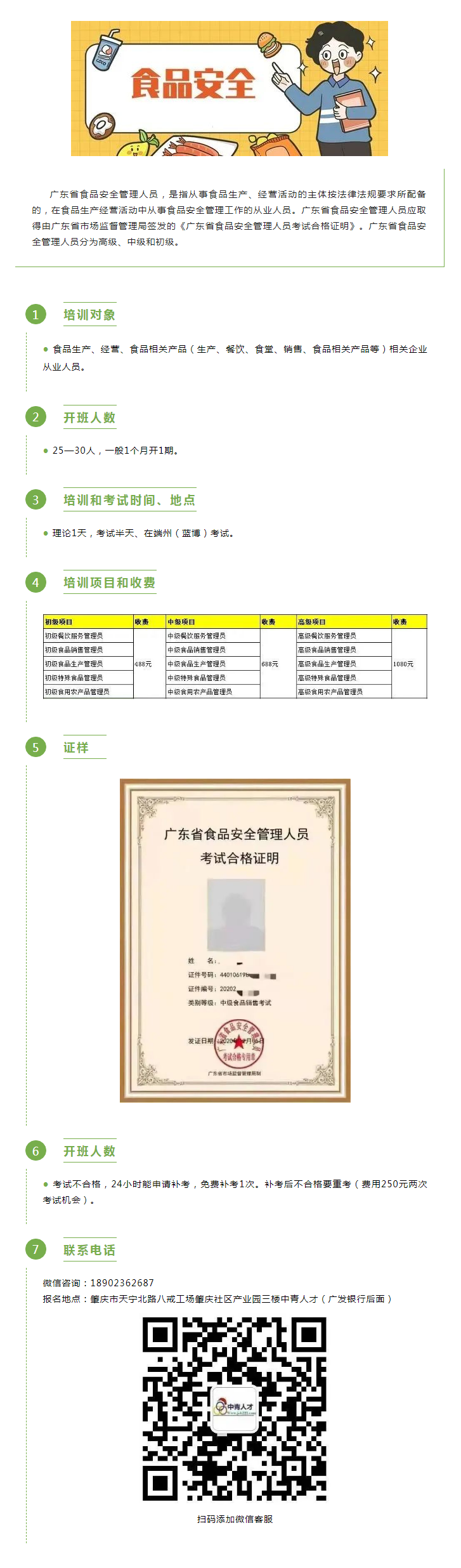 肇慶食品安全管理人員開考啦!理論培訓考試,免費補考1次,快來報名!