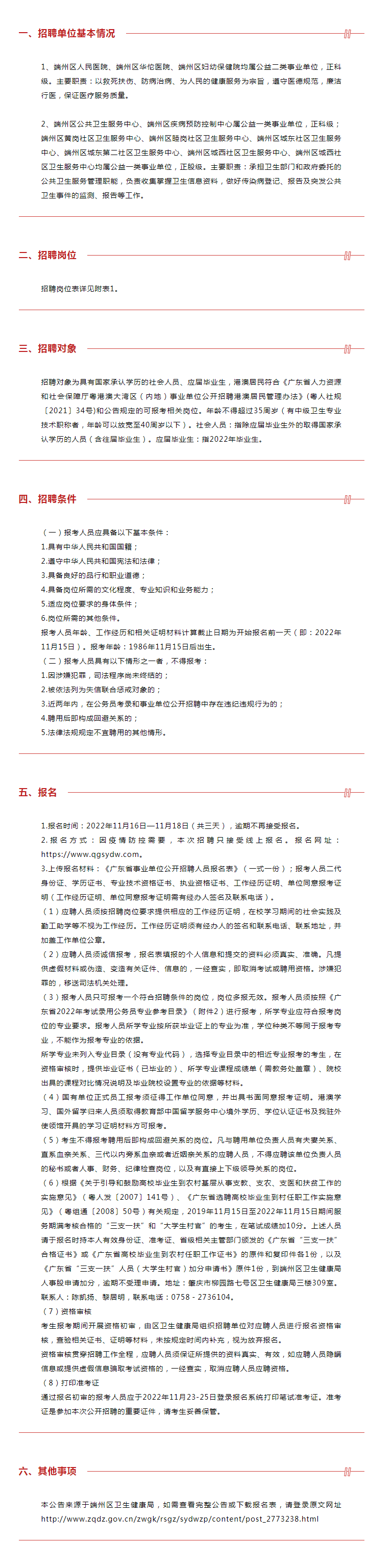 2022年肇慶市端州區(qū)衛(wèi)生健康局下屬事業(yè)單位公開招聘工作人員公告