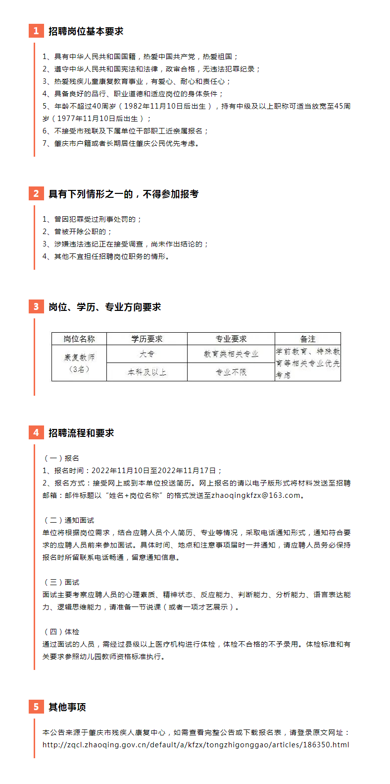 肇慶市殘疾人康復(fù)中心招聘殘疾兒童康復(fù)教師(臨聘人員)公告