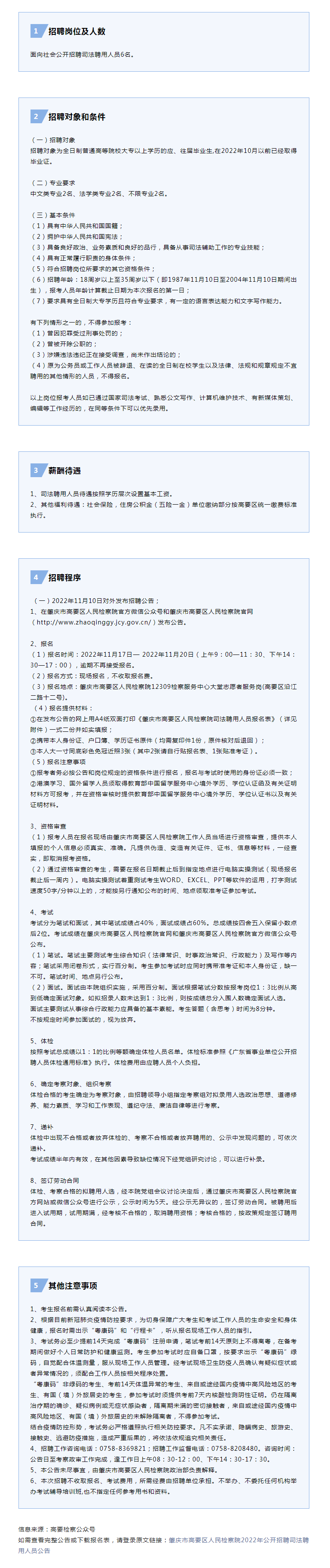 肇慶市高要區(qū)人民檢察院2022年公開招聘司法聘用人員公告